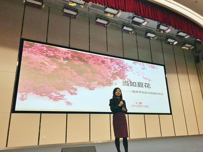此次讲座以“生,当如夏花”为主题。弋鹏书记首先从“生命”二字出发,通过几个真实的案例,向广大研究生们介绍 “生命价值观的体现情况”和“老员工生命情感体验调查结果”,告诉我们要认识生命的真正意义。随后,弋鹏书记就“如何应对心理缺陷”,向广大研究生开了一剂运动处方,并鼓励同学们积极参加体育锻炼,踊跃参加各项体育活动和学术竞赛,勇敢地在众人面前展示自己,更好的克服自己的心理障碍。在互动环节中,弋鹏书记通过“鼓掌握手”游戏,将整场讲座的氛围推向了最高潮。最后,弋鹏书记赠言——青春是最美好的,不要怕,不要悔,细节决定成败,态度决定人生。