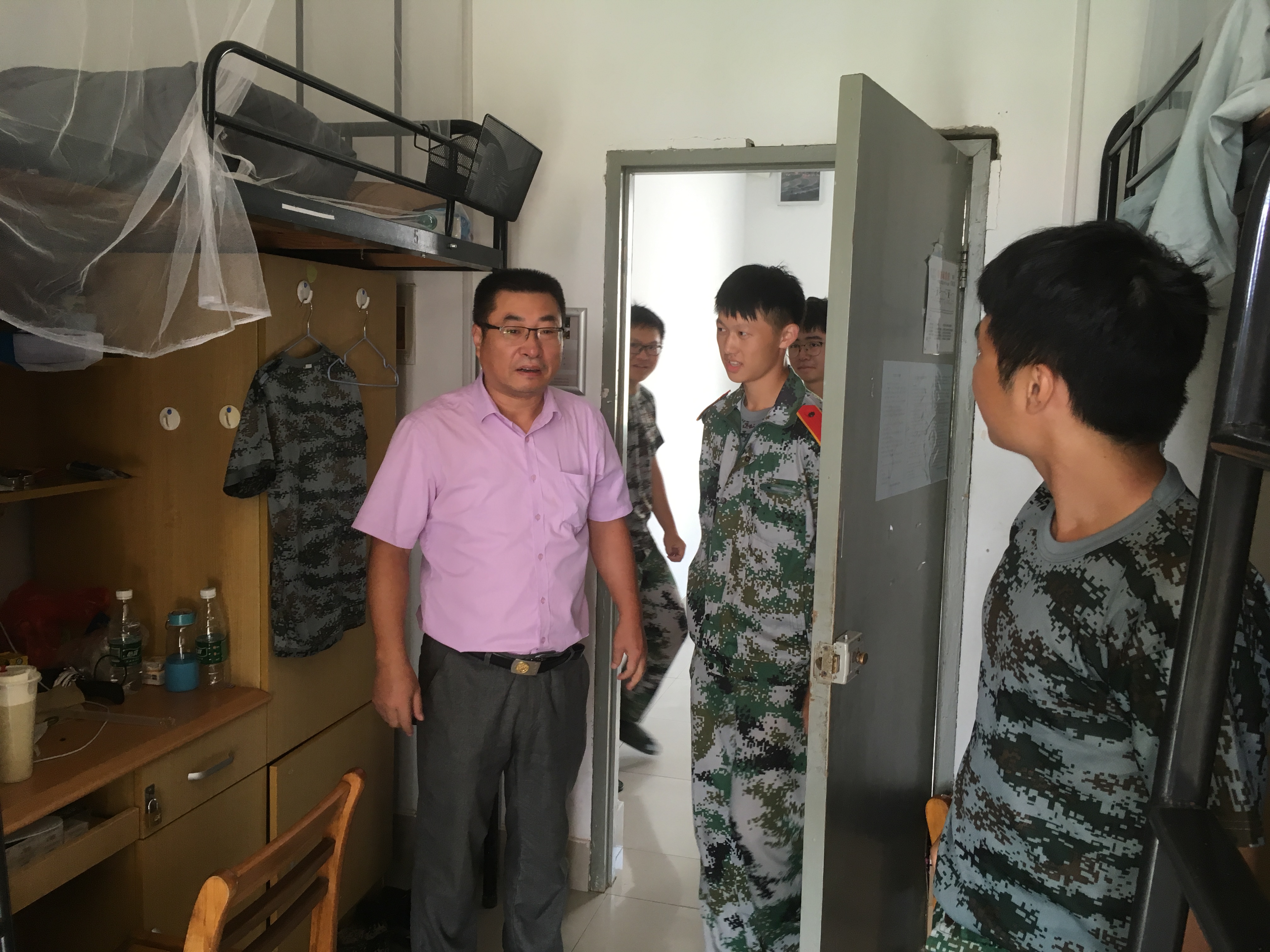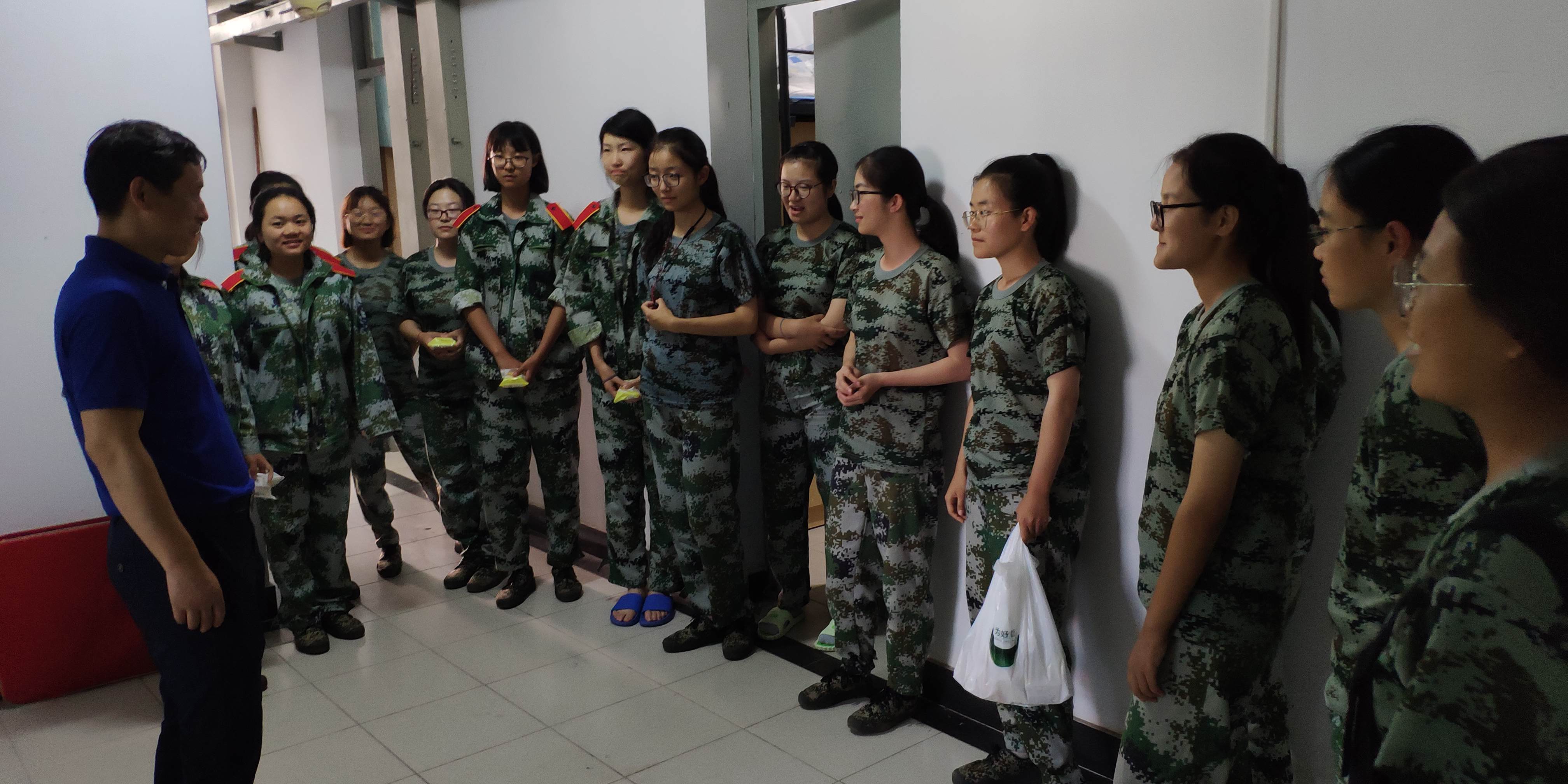 18级班主任武文良、居沈贵、周浩力、徐志军四位老师以及新生助理班主任们带着月饼、水果、零食等丰厚的慰问品,走到每间宿舍为辛苦军训的同学们鼓舞加油。老师与同学们亲密无间地畅谈军训的酸甜苦辣,鼓励同学们认真刻苦的面对训练,争做优秀标兵,书写好大学第一篇华章。老师们预祝同学们中秋快乐,军训汇演也能如这十五的月亮般圆满完成。小班们还为同学们组织了一场别开生面的中秋晚会,才艺表演、各类游戏,让同学们真真切切地感受到了独在异乡也能有很多朋友陪伴的快乐。