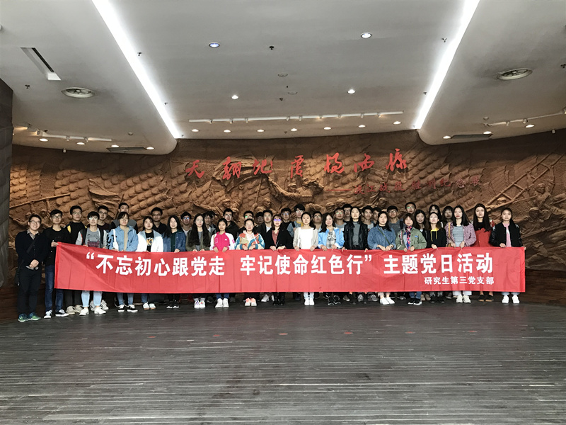 为学习十九大精神、践行红色革命精神,丰富支部党建文化,加强支部内涵建设,研究生第三党支部组织工研1803班全体同学开展了“不忘初心跟党走,牢记使命红色行”主题党日活动,活动分为参观渡江胜利纪念馆和老山徒步学习十九大精神。