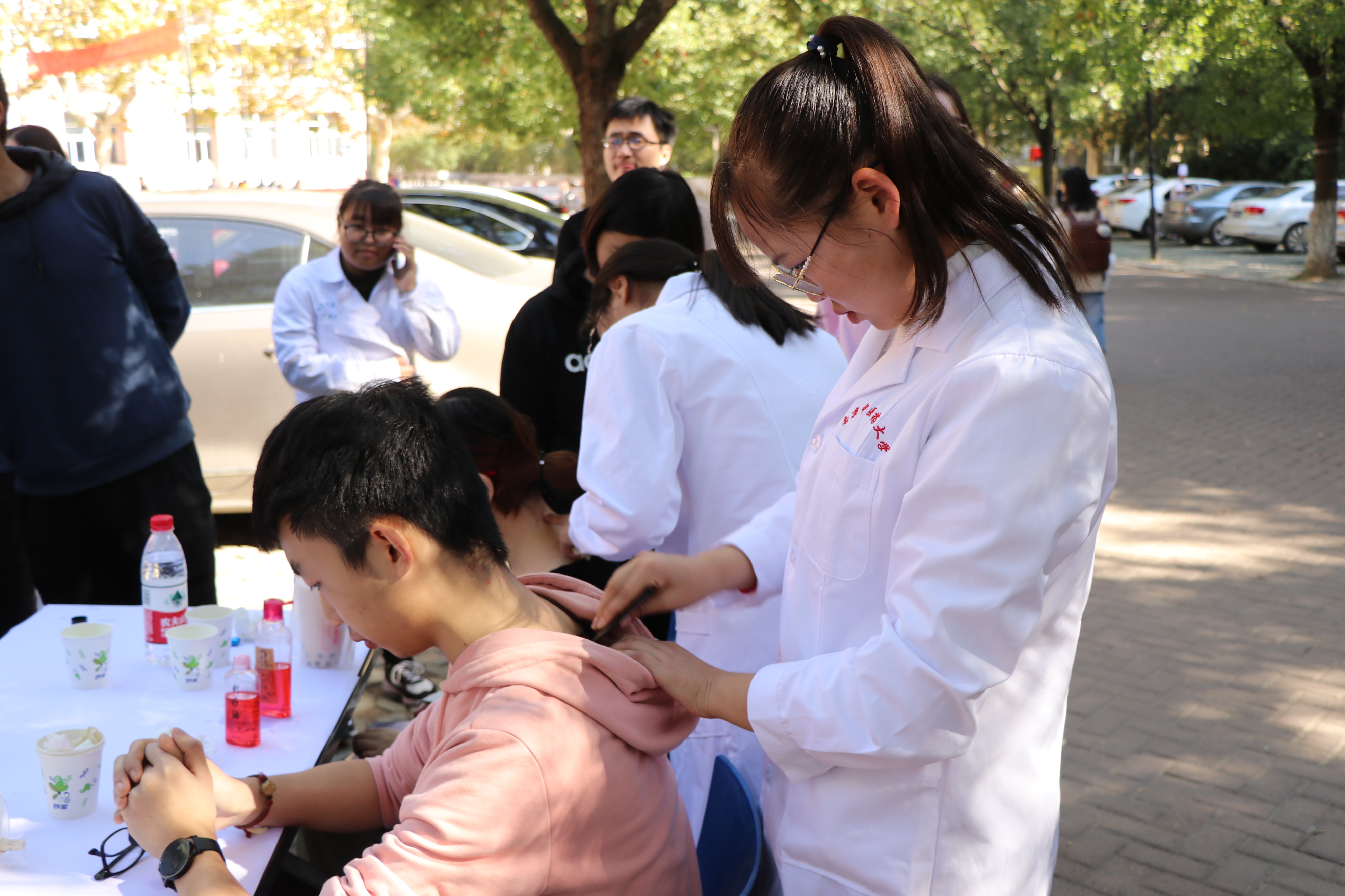 10月28日上午9点,太阳成集团tyc234cc化爱社和南中医校红十字会老员工分会联合举办以“金秋十月,健康护航”为主题的义诊活动。参加此次活动的是南中医校红十字会老员工分会的同学们和化爱社部分成员,活动提供了包括测量血压,刮痧,推拿,艾灸等项目。