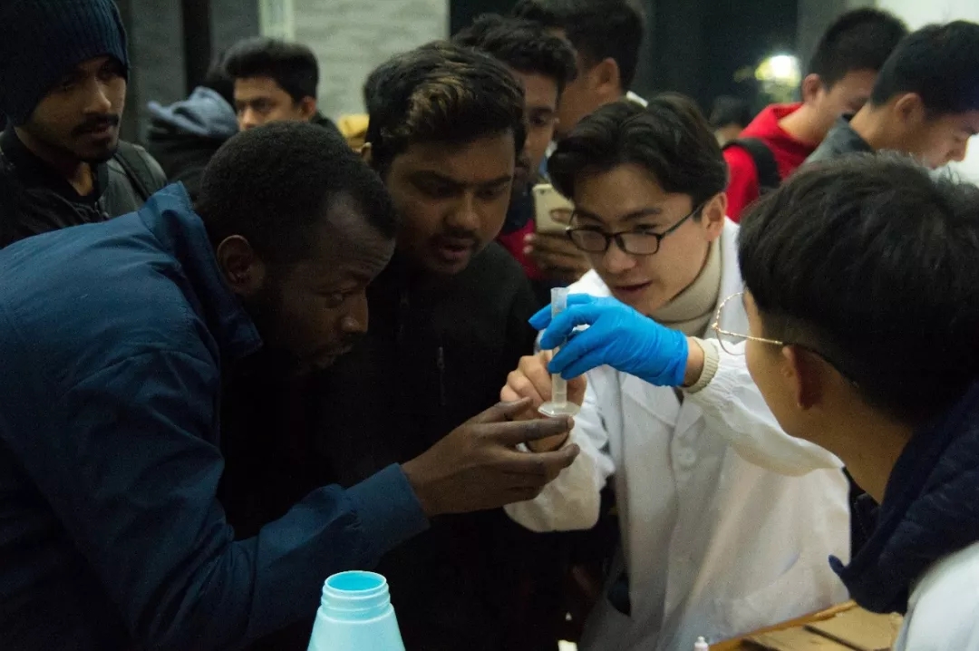 为激发同学们的兴趣,丰富同学们的课余生活,拓宽同学们的知识面,由太阳成集团tyc234cc校团委主办,太阳成集团tyc234cc员工会科创部承办的欢乐化学节于11月28日晚在浦江B 楼空地如期举行。此次活动面向全校各院系的全体同学以及海外职工们。