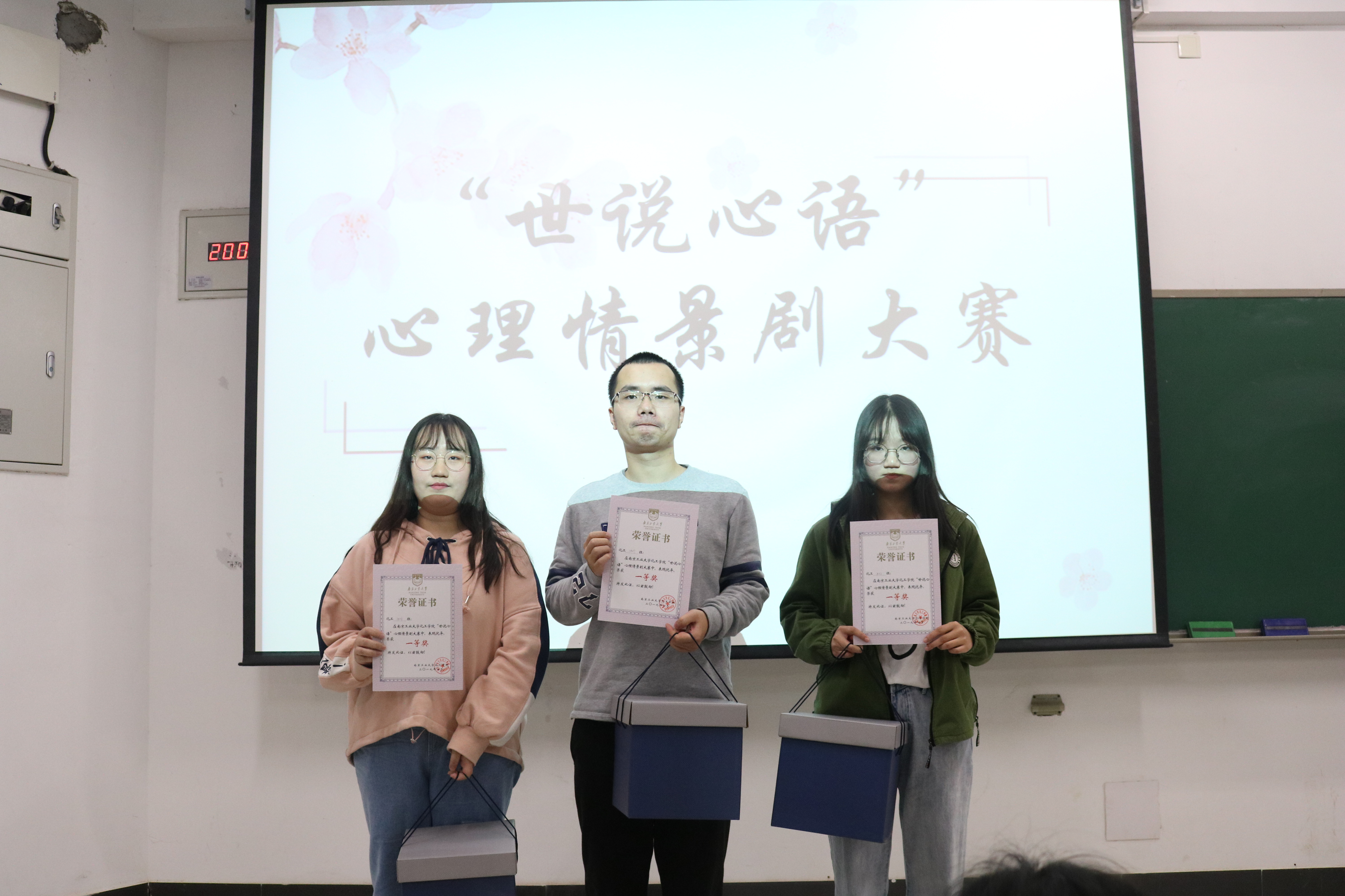 4月13号晚上6:30,太阳成集团tyc234cc化爱社在厚学300举办了第一届“世说心语”心理情景剧大赛。本次活动邀请了校级情景剧比赛获胜者担任评委,化爱社部分成员及太阳成集团tyc234cc2018届员工参加了本次的活动。