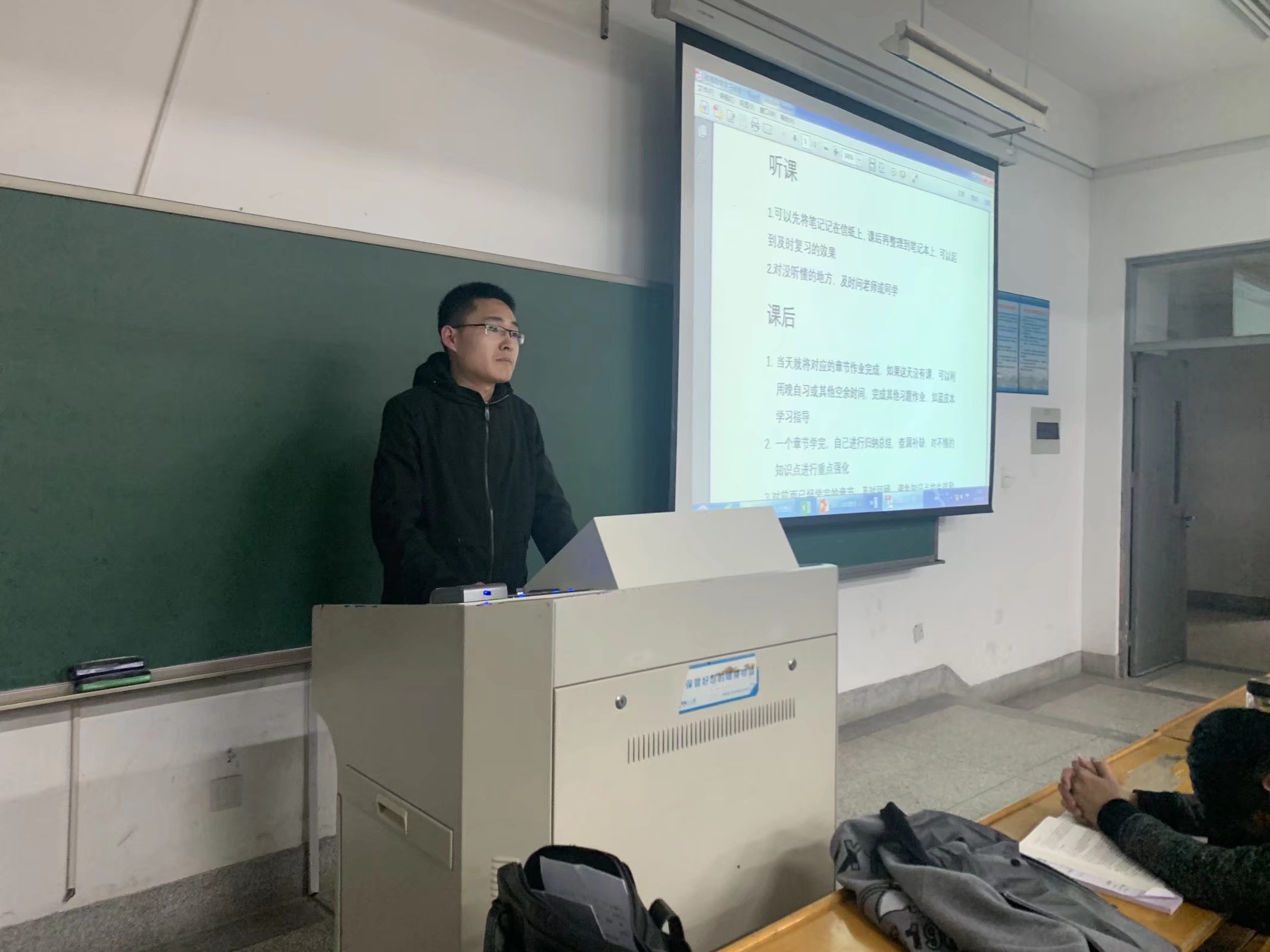 会议初,主持人介绍了本次会议的主要流程,主要包括学习经验介绍、成绩及奖学金通报、目前同学们存在的问题等内容。接着由宰天明、高建红、周凯三位同学分别为大家分享高等数学、大学英语及无机与分析化学的学习经验,掌握正确的学习方法,才能事半功倍。宰天明强调在做笔记方面要下功夫,提高平时的学习实效;高建红用精炼的语言强调了英语上听、说、读、写在长期培养过程中方法;周凯阐述了他对于理论、公式、方法的一些心得经验。