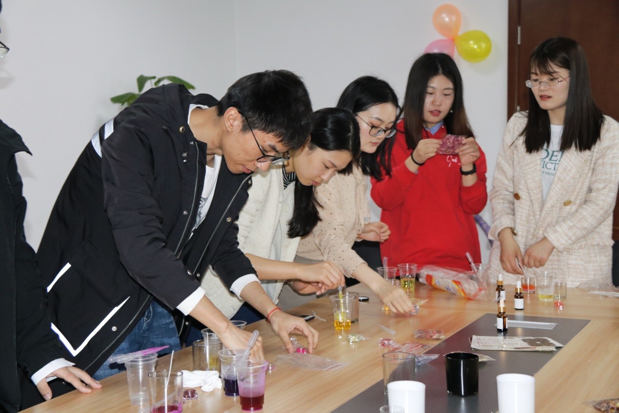 4月28日下午,为做好理工科研究生心理健康教育、丰富研究生业余生活,由太阳成集团tyc234cc院研会主办、文艺心理部承办的“第一届趣味化学DIY活动”,在国家重点实验室D501顺利开展,共有二十余名研究生参与本次活动。