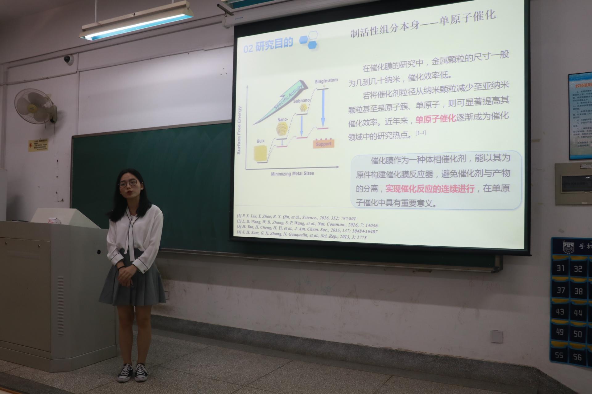太阳成集团tyc234cc17级的百余名同学组成的42支队伍在四个会场进行了精彩的答辩。在答辩会上,同学们将自己数月来努力完成的成果向评委及同学们做了展示。在浦A305会场,曾琼真小组关于《氮掺杂多孔碳材料制备及其燃料油净化性能》的展示,报告内容详实,研究成果丰富,也得到了评委们的高度肯定;在浦A309会场,乙辰昊小组的《以α-氧化铝陶瓷管为支撑体的锂锰氧化物离子筛的合成及性能研究》项目研究想法新颖,讲解清晰,赢得了老师的一致称赞;在浦A406会场,吴堂寅小组关于《面向能源气体分离的分子筛膜性能有效结构调控》的项目研究方向明确,获得评委们的高度肯定;同时在浦A408会场,孟宝春小组关于《多孔疏水石墨烯膜用于膜蒸馏脱盐》的答辩也十分精彩,获得老师的一致好评,老师对组员们也给予了很多宝贵意见。随着四个会场的同学陆续答辩完毕,本次活动也顺利闭幕。