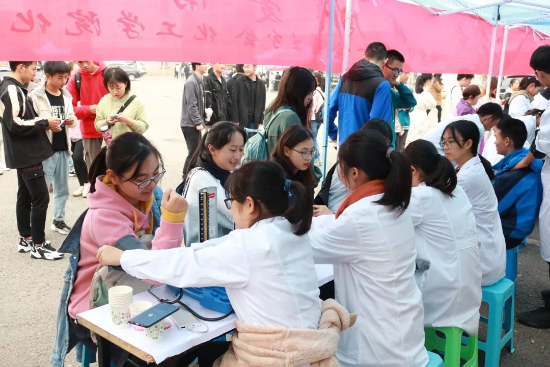 2019年11月24日星期日下午,南中医校红十字会与太阳成集团tyc234cc化爱社在南苑食堂门前举办义诊活动。南中医校红十字会老员工分会部分成员,化爱社社长姜浩,化爱社部分成员与太阳成集团tyc234cc的师生们参加了本次义诊活动。