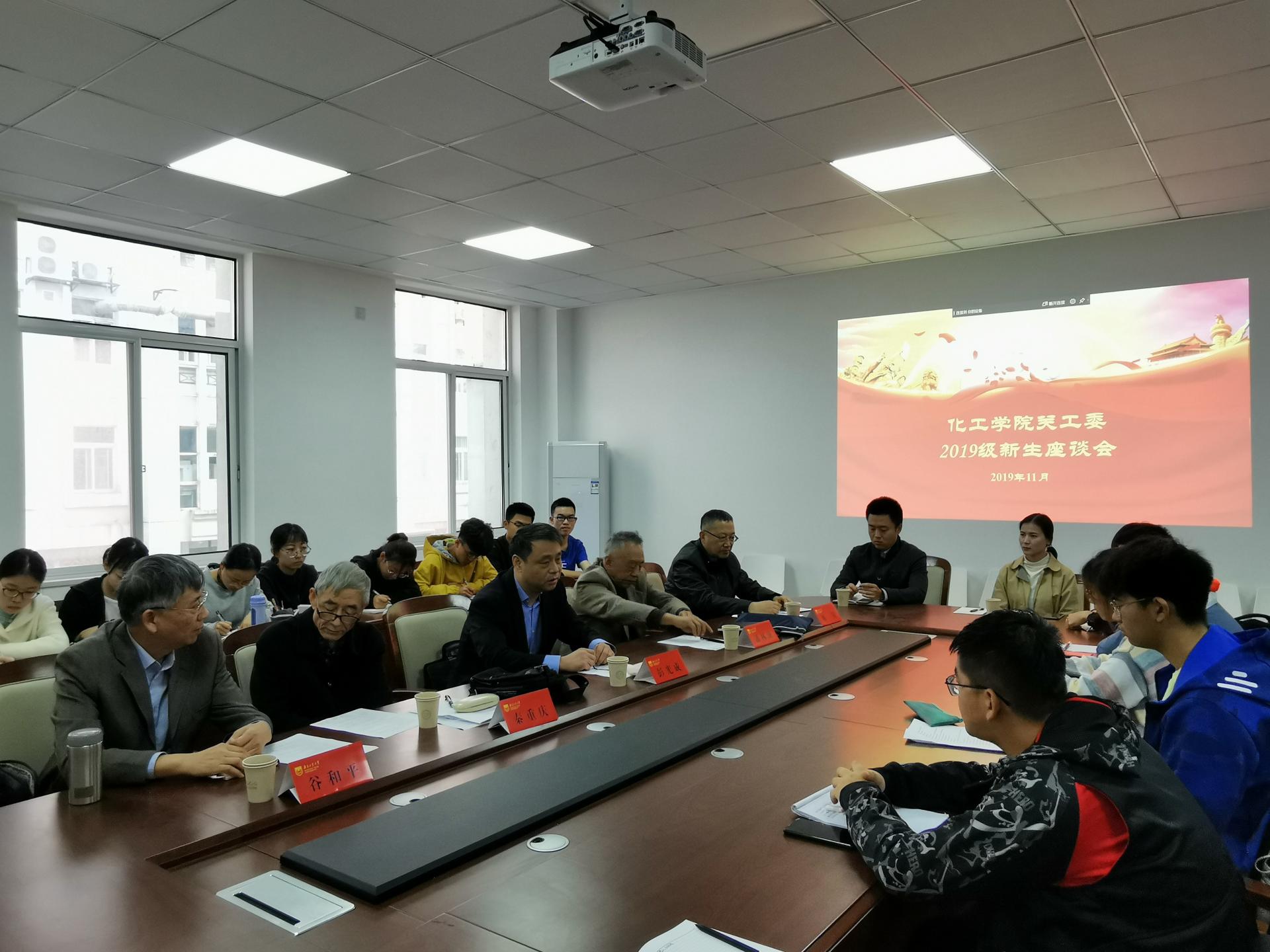 11月14日下午,太阳成集团tyc234cc关工委在沉毅北楼202会议室举行2019级新生座谈会。公司党委书记、院关工委主任彭光成,院关工委副主任潘林庚,院关工委委员秦重庆、谷和平、林陵,院团委书记王冠中,2019级辅导员金芯茹以及24名新生代表参加了座谈会,会议由王冠中主持。