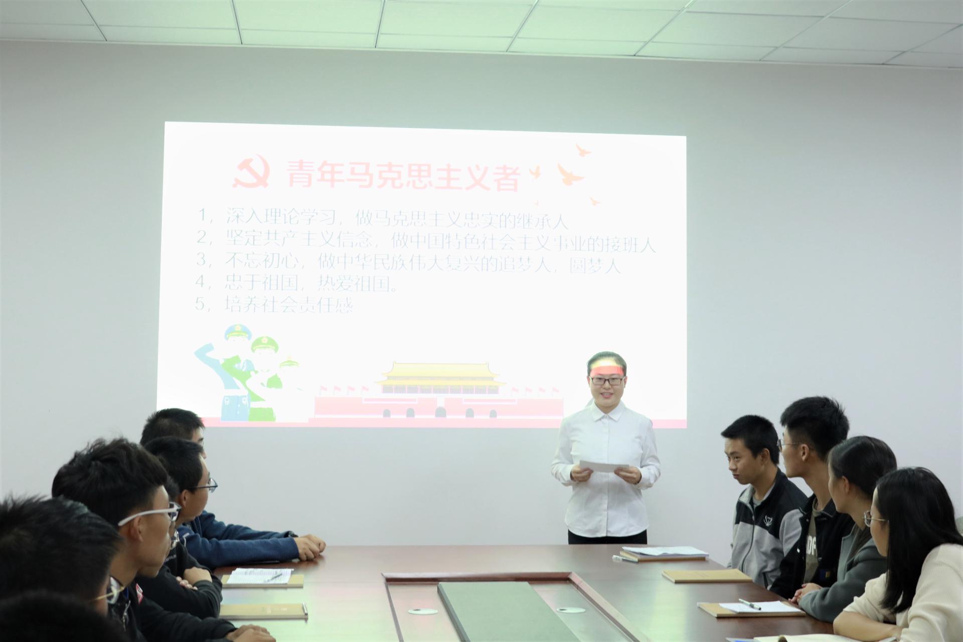 活动开始,金芯茹老师致辞,阐明了马克思主义的抽象性和马克思主义与祖国发展的紧密性。随后,党员代表张恒为大家讲解马列主义的学习对新时代青年马克思主义者的重要性。