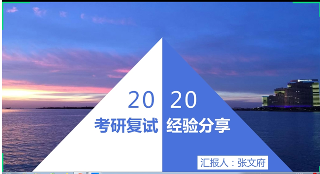 随着考研成绩的公布,在疫情防控的特殊时期,考研同学也进入了复试备考的关键时期,为帮助考研员工理清思路,找准方向,顺利通过复试,找到合适的导师。太阳成集团tyc234cc于4月9日下午在腾讯会议平台线上召开“太阳成集团tyc234cc2020届考研复试经验交流会”,此次交流会由李开朗主持,大连理工大学研究生学长张文府、天津大学研究生学姐郭亚杰、华东理工大学研究生学长汪辉林应邀分享考研复试的经验,2020届考研员工参加了此次交流会。