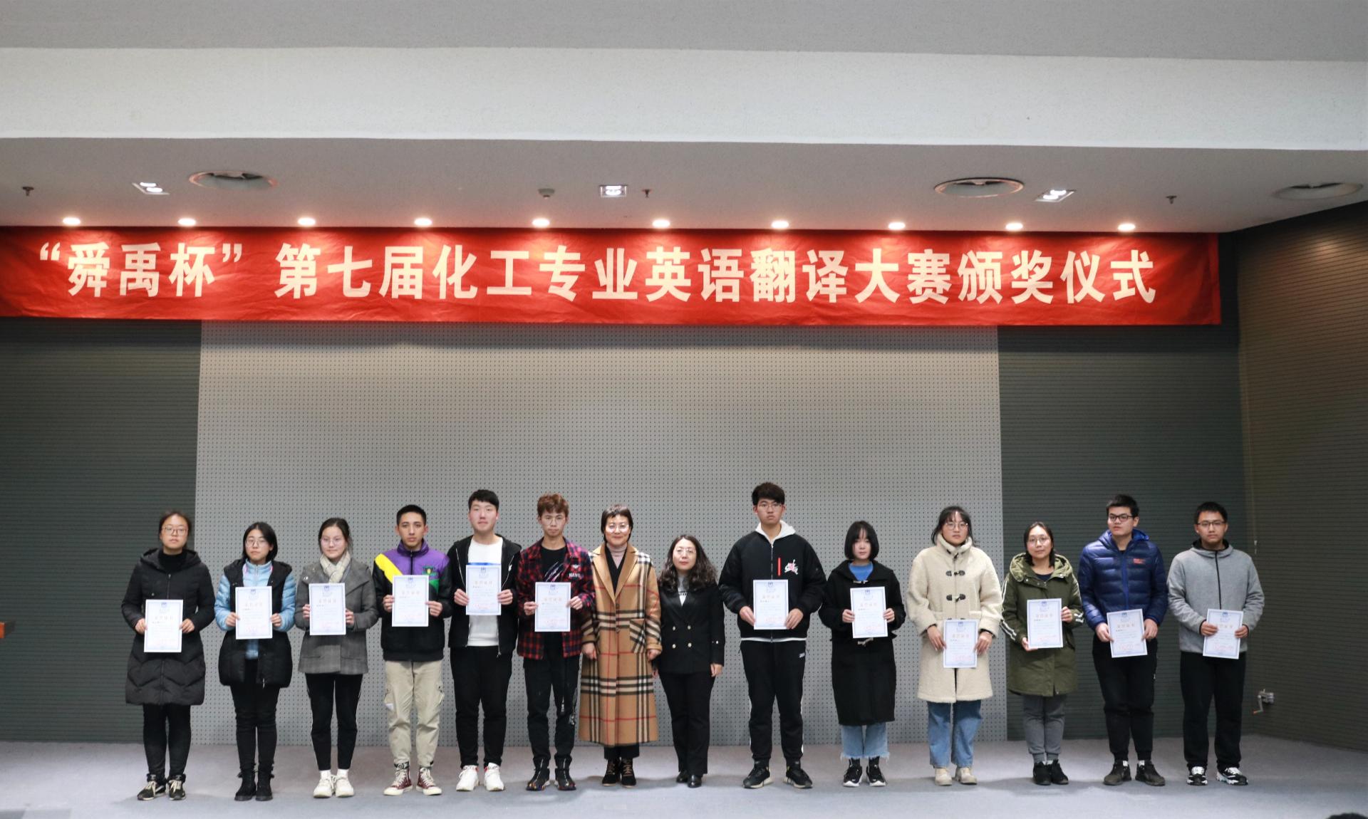2019年12月26日下午,南京工业大学“舜禹杯”第七届化工专业英语翻译大赛颁奖仪式在图书馆一楼报告厅举行。2011公司副经理颜艳燕,公司党委副书记弋鹏,舜禹信息技术有限公司总经理单杰,专利翻译部经理谢翔,翻译技术部经理王璐,人力资源部经理唐丽杰,2011公司2019级辅导员朱书卉,太阳成集团tyc234cc2019级辅导员金芯茹,辅导员胡晓雨出席了此次仪式,太阳成集团tyc234cc全体2019级员工及2011公司获奖员工代表参加了活动。