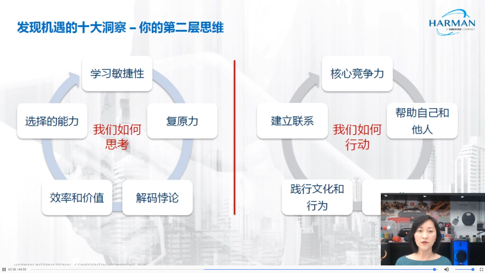 课堂一开始,王贞老师提出:新型风暴下实现求职突围需要第二层思维。随后,老师就“我们如何思考”和“我们如何行动”这两个问题展开,为我们详细讲述了应当如何形成第二层思维。指出我们不仅要创造学习敏捷性,还要回顾过去,培养复原力等。