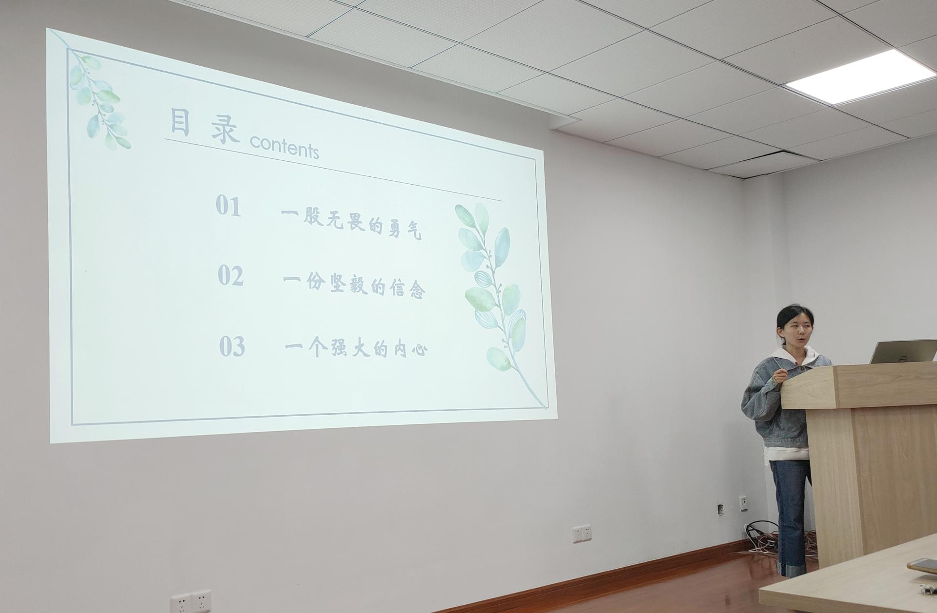 接着,已经成功保研的训练营小班17级王晓越以“三个‘一’与老员工活”为主题,从“一股无畏的勇气“、 “一股坚韧的信念”“、“一个强大的内心”三个方面,提醒同学们要跳出舒适圈,保持专注的习惯、坚持自己的目标,保持良好的心态,并结合自身经历提出了切实有效的建议,祝福大家度过更有意义的老员工活。