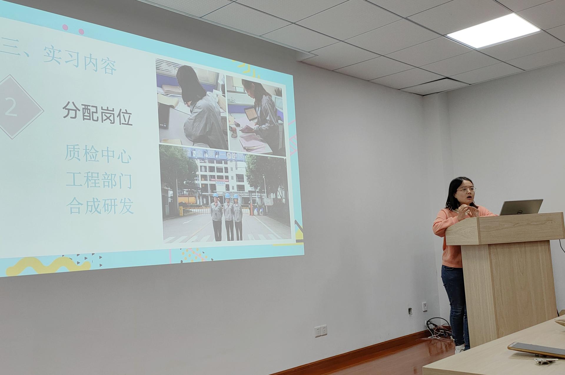 首先,暑假期间前往张家港市国泰华荣化工新材料有限公司实习的两位训练营成员代表李晴和郑丽君分享实习体会,详细讲述了具体的实习内容、实习感悟和收获等,提醒成员们要多参与到实习实践中,提高专业实践能力。通过她们的分享,让我们感受到实习对于个人成长和经历方面的巨大价值。