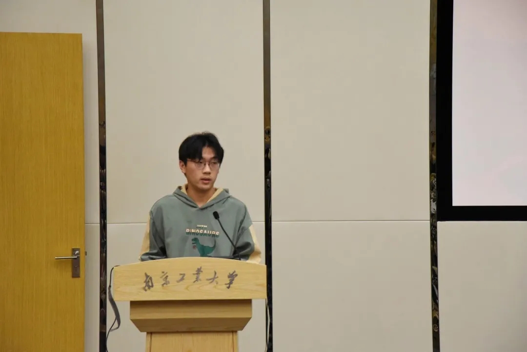 化工1806班丁雯珺作为老生代表发言。他表达了对小耳铃们的真挚欢迎,通过分享自己两年以来在学习与生活方面的点滴感悟,激励学弟学妹们不忘初心,乘风破浪,勇往直前,度过灿烂美好的老员工活。