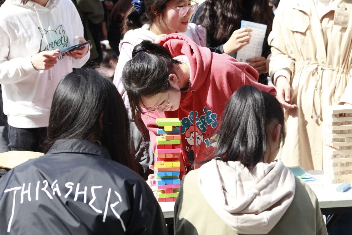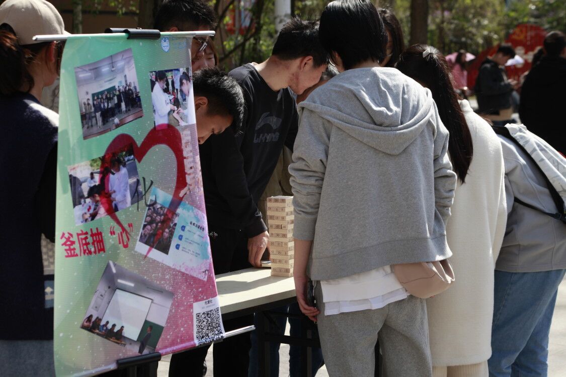 3月24日下午2点,“320心理健康周”的开幕式在沉毅广场举行。本次活动由校心协联合公司心理协会共同举办,以心理活动集市的形式展开。在活动现场,每个公司的心理协会都极力展示本院特色,通过心理小游戏提升同学们的心理健康意识,普及心理知识。开幕式结束后,心理集市活动正式开始。每个摊位前都挤满了热情高涨的同学们,公司的釜底抽“心”游戏吸引了大量同学前来尝试:同学们以1V1的方式进行游戏,轮流抽出木条,随着木条不断被抽出,气氛愈发紧张,直到塔倒下那一瞬间,游戏结束。最后获胜的同学可以直接得到印章作为奖品,未获胜的同学也通过正确回答心理知识相关的问题获得印章。通过这个游戏,相互陌生的同学通过团队合作建立起了新的友情。随着各种奖品数量的减少,本次活动也接近了尾声。此次活动丰富了同学们的校园生活,帮助同学们更加重视心理健康。希望通过本次活动可以使同学们更积极地面对心理问题,以应对人生中的各种挑战。
