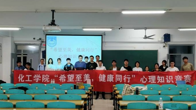 5月20日晚上七点,化爱社在厚学楼314教室举办了“希望至美,健康同行” 心理知识竞赛。本次活动由化爱社成员何宋欢与岑悦灵主持。20级各班心理委员及员工代表参加了此次活动。
