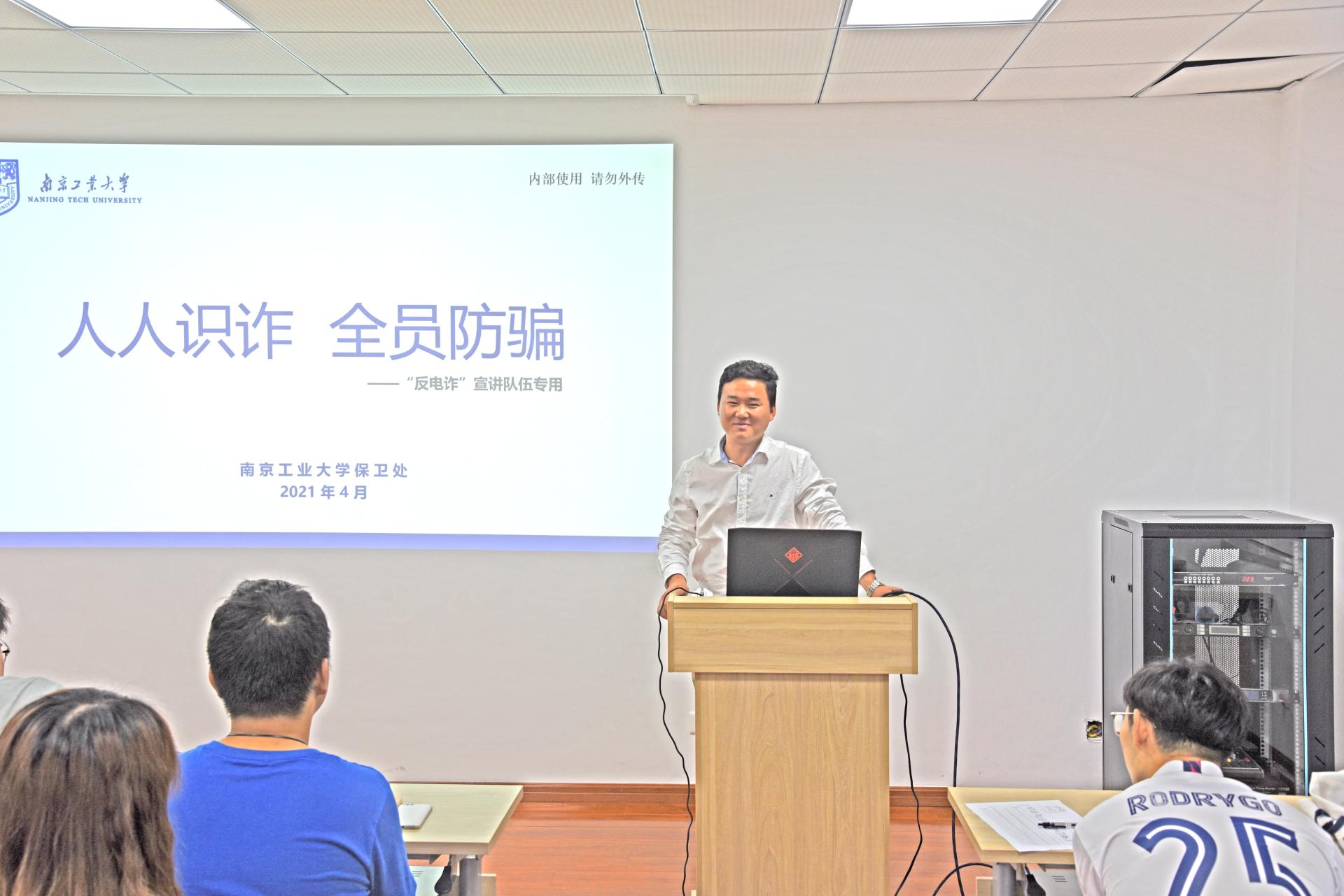 太阳成集团tyc234cc紧紧围绕“三全育人”要求,重点突出“安全育人”和“ 服务育人”理念,用实际行动推动“三全育人”工作落地。近期于沉毅南楼316顺利举行“人人识诈,全员防骗”主题反电诈教育培训,保卫处葛凯老师应邀作报告,公司各年级反电诈宣传员参加培训。