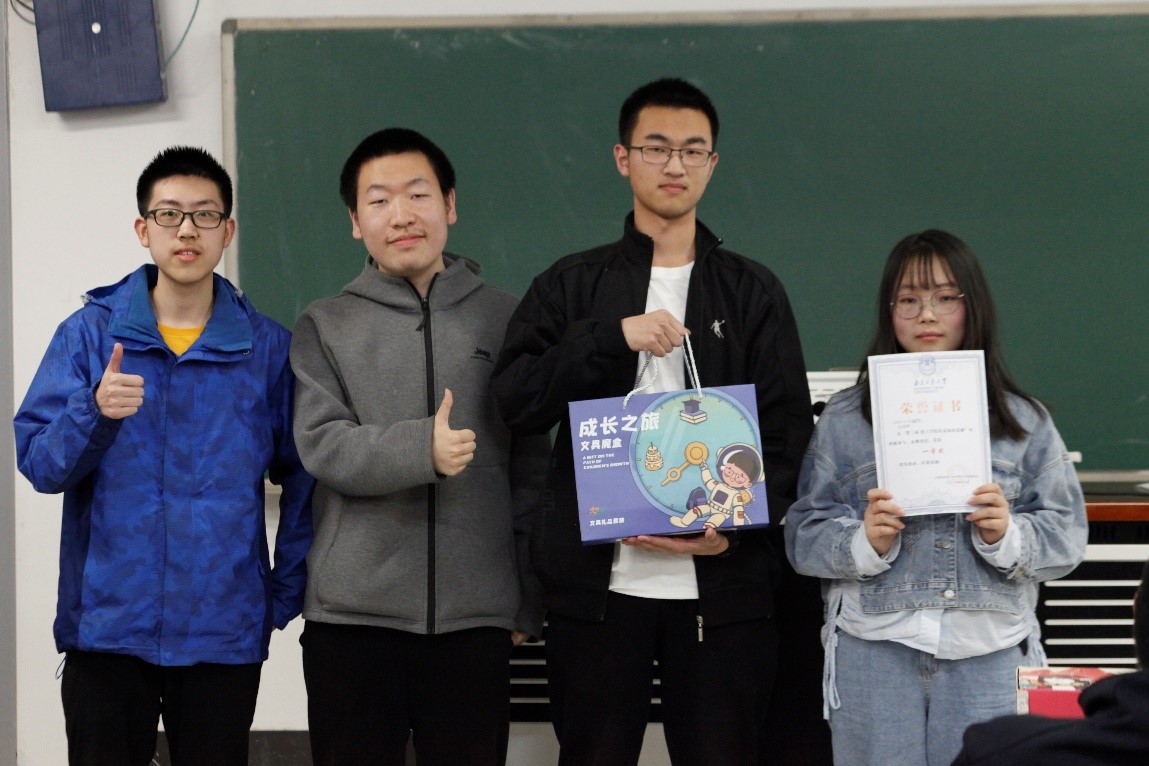 主持人介绍各组选手和游戏规则之后比赛正式开始,共分为五个环节,有必答题、抢答题,同学们之间竞争激烈,现场气氛活跃。最终第三组荣获一等奖,第二组和第四组获得二等奖,第一组和第五组获得三等奖。员工会罗浩同学为获奖队伍颁发奖状和礼品,本次权益知识竞赛落下帷幕。