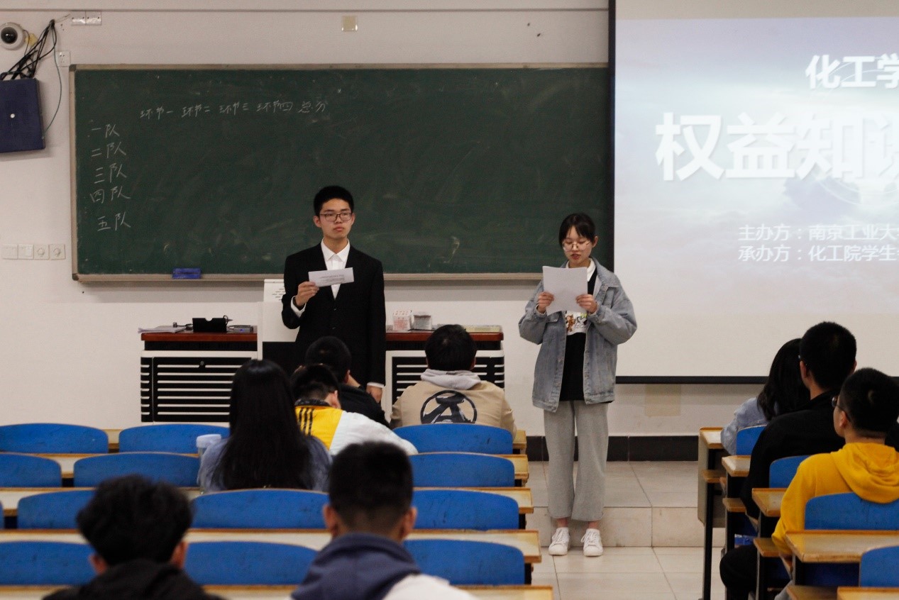 4月9日晚,公司员工会在厚学209教室成功举办权益知识竞赛。本次竞赛以“权益在我心,安全伴我身”为主题,来自各个班级15位选手组成5支队伍展开激烈角逐。活动由蒋子纯、王怿尧两位同学主持,