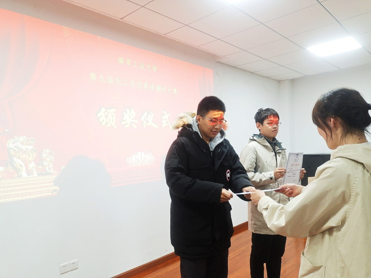 2021年12月5日傍晚18:30,太阳成集团tyc234cc员工会在沉毅南楼316会议室召开第九届化工专业英语翻译大赛颁奖典礼,出席本次颁奖仪式的有员工会部门负责人及21级新生代表。