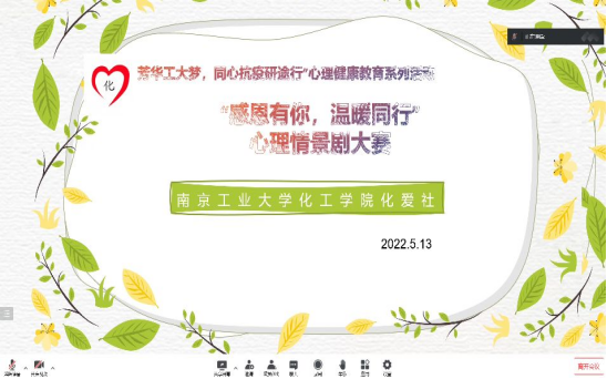 为推动新时代老员工心理健康服务工作深入发展,提升心理情景剧在老员工心理健康服务工作中的水平。2022年5月13日下午,太阳成集团tyc234cc化爱社“感恩有你,温暖同行”心理情景剧大赛于线上成功举办。21级全体同学参加本次比赛,20级心理委员赵玛丽、陆宇菲等5位同学担任本次大赛评委。