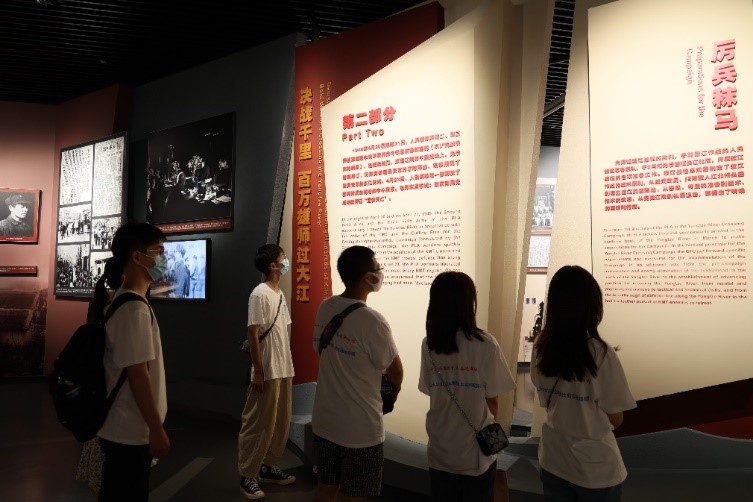 8月13日中午,团队成员又参观了“人间正道是沧桑——中国共产党南京历史展”,在入口处便是庄严的入党誓词,团队中的党员们纷纷举起右拳,重温了入党誓词,坚定了身为共产党员的初心和使命。南京,作为中国最早传播马克思主义的地区之一,在国民党反动统治时期经历了诸多磨难。在中共中央和中共江苏省委领导下,南京党组织团结和带领人民,开展了反对国民党反动统治的艰苦斗争。最终,南京也在浴血奋战中,见证了抗战胜利的历史荣光。
