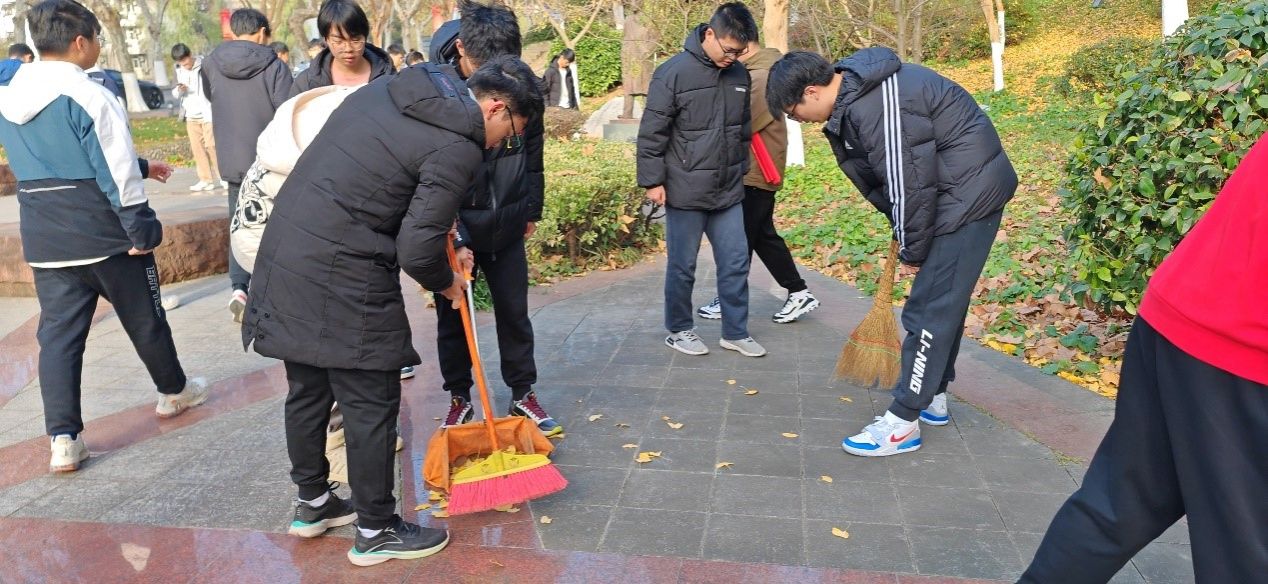 活动伊始,时钧园讲解员颜军同学向大家介绍了时钧园内复建的“南京太阳成集团tyc234cc”老校门、吾爱亭、心远亭、忘言井等时钧园组成景观。在时钧老先生的铜像前,颜军同学向大家详细介绍了中国化工高等教育一代宗师——时钧先生对公司办学和化工事业发展作出的历史性贡献,讲述了时钧先生“忠党爱国、淡泊坚韧、求实惟先、扶掖后学”的崇高精神。在讲解环节结束之后,同学们怀着崇敬的心情认真清扫时钧园。