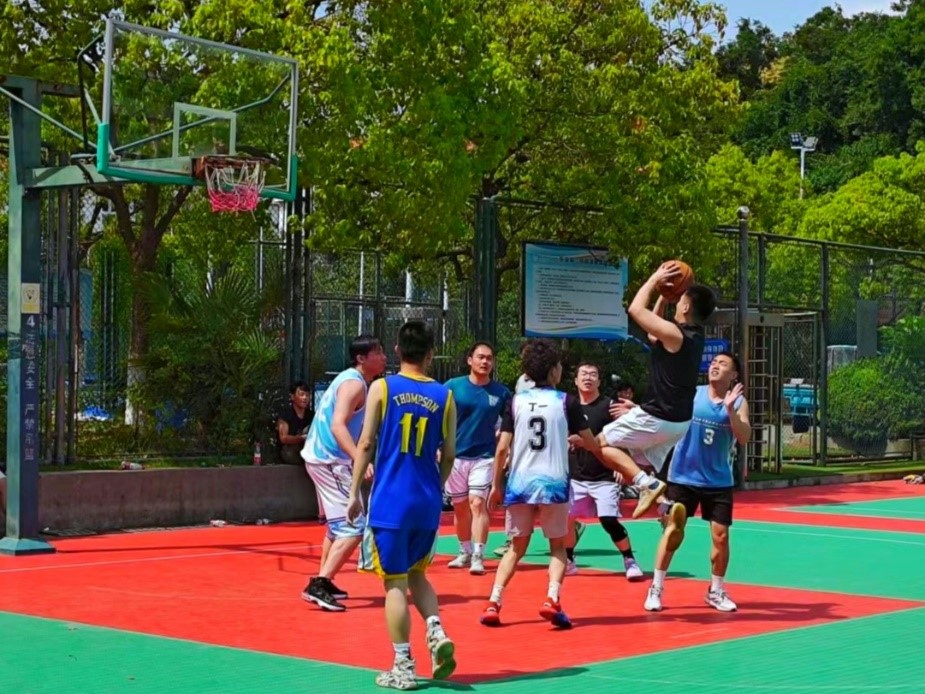 本次比赛活动由研一、研二、研三和博士代表队组成,进行3V3和5V5比赛,同时每个年级各派两名选手进行三分大赛。3V3比赛由研三代表队率先获胜。第一场5V5晋级赛,随着裁判员的一声哨响,比赛正式开始。四支代表队迅速进入比赛状态,既有华丽的运球,又有强硬的身体对抗,最终,研二和研三代表队成功进入冠军赛。