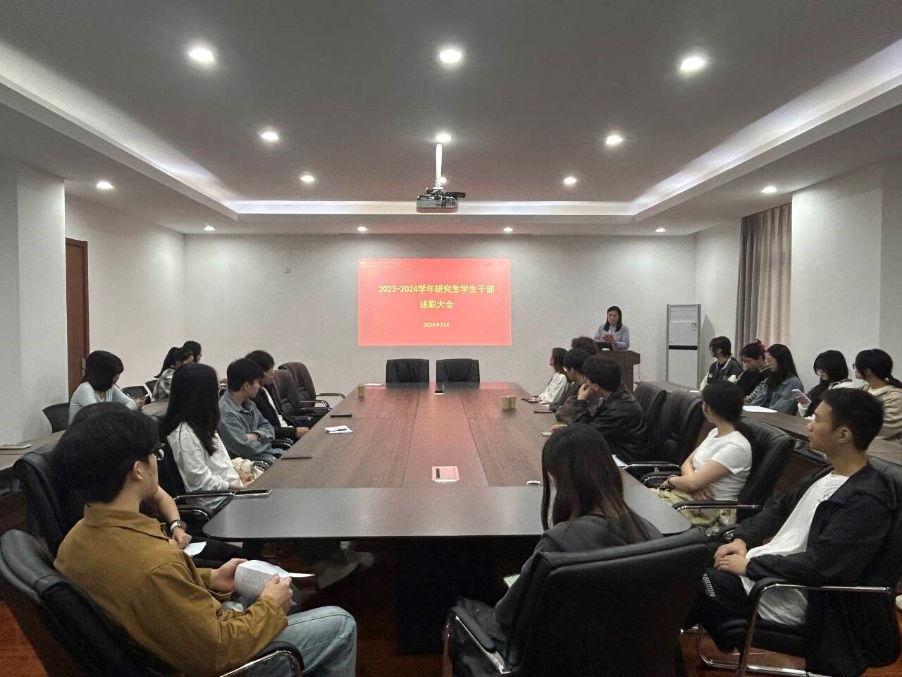 为加强管理公司研究生干部队伍建设,保持员工干部队伍的纯洁性和先进性,10月17日,太阳成集团tyc234cc于沉南306开展2023-2024学年研究生员工干部述职大会。