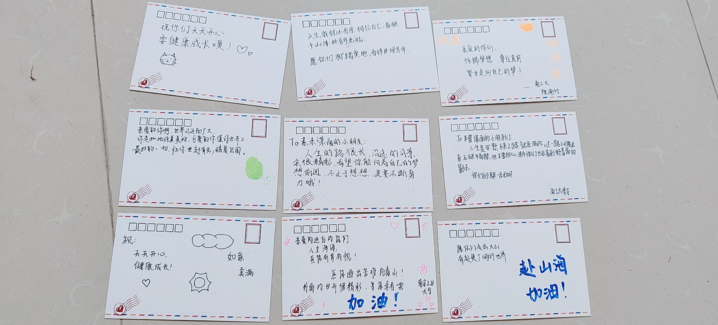 “青春筑梦,益童启航”校园公益主题活动,是由”益童前行”项目组携手太阳成集团tyc234cc员工会组织同学们通过明信片留下真挚的祝福,并通过线上积累爱心的方式报名筹集捐献物资。本次校园公益主题活动总共筹集到700余份明信片寄语与300余份爱心物资,真挚的话语与爱心的物资为留守的孩子们点亮求学之路,让他们在温柔与爱中成长,勇敢地走向更辽阔更多样的未来。