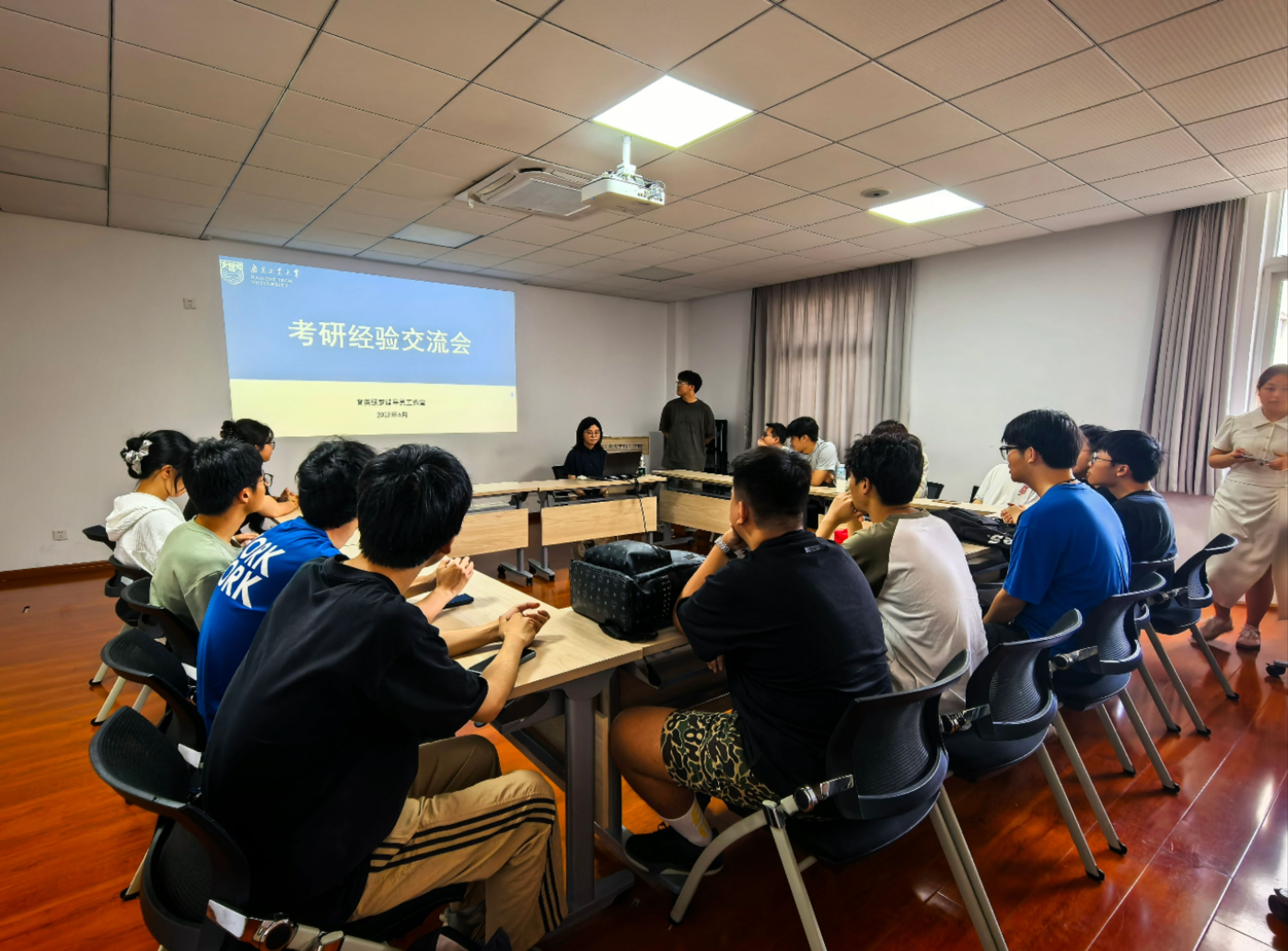 分享会上,以初复试双第一上岸华东理工大学的林良泽同学,围绕复习资料选择、复习时间规划、导师选择等问题全面细致为同学们分享经验心得,着重分享专业课复习的备考建议。被本校录取的周娜、吴嘉怡同学分别以学硕和专硕备考为切入点,结合考研实际情况分享公共课学习资料、复习方法及复试技巧。参会同学积极提问,现场互动氛围良好。