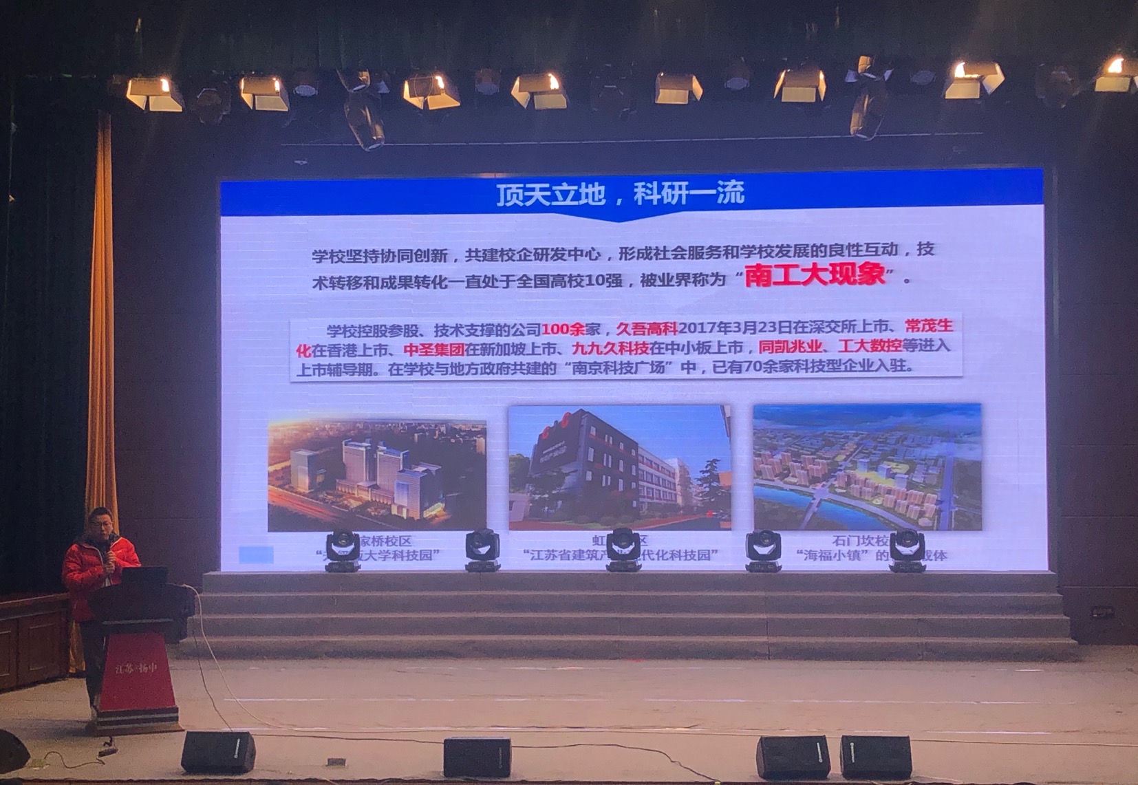 为落实好招生宣传的有效性和常态化,构建好公司与生源高中的交流平台,12月9日下午,公司前往扬中高级中学开展招生宣传工作。此次活动是由扬子晚报主办的“2020江苏名校联盟本科高校招生说明会”,太阳成集团tyc234cc化工系副系主任周志伟老师,辅导员胡晓雨一行参加活动。