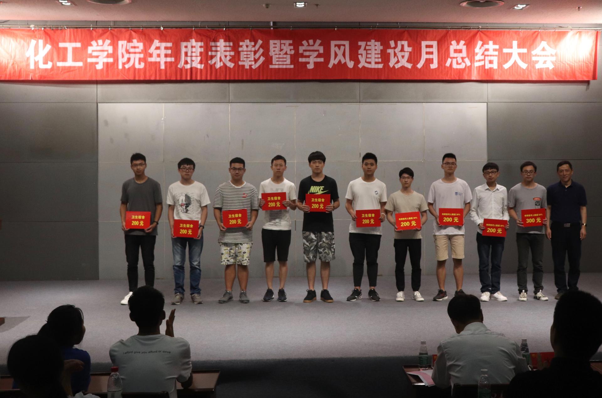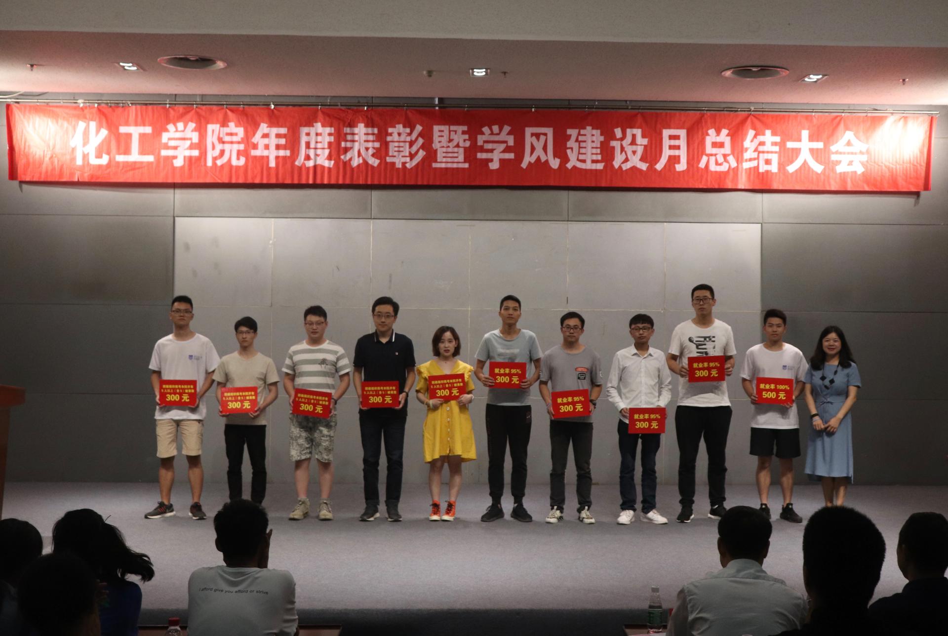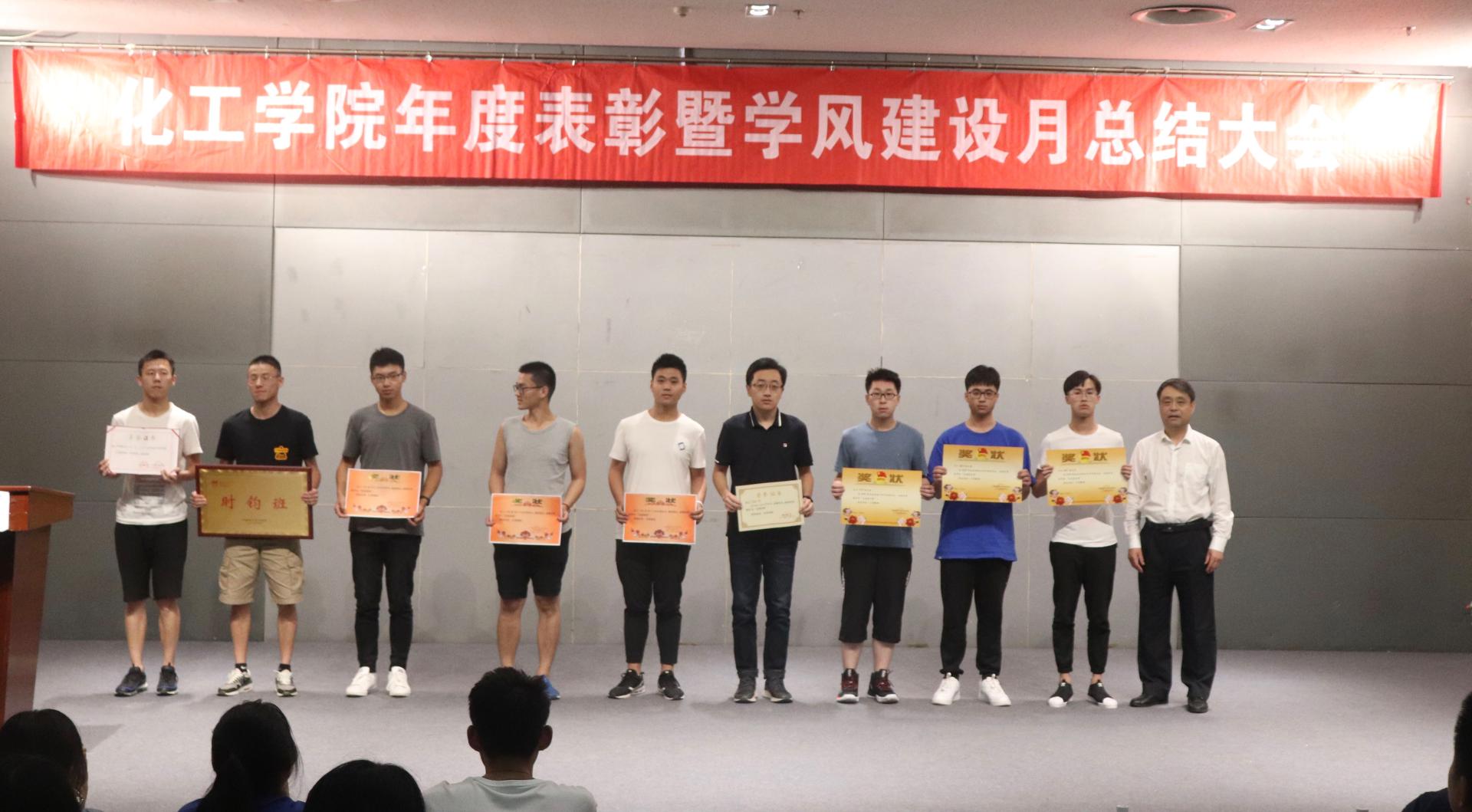 大会伊始,副经理汤吉海老师进行年度学风建设盘点,总结了公司在学风建设、先进集体和个人的培育、国际交流合作、升学就业等方面的成果和经验,同时也指出对标建设一流本科专业所存在的不足,希望同学努力学习,积极参与竞赛与实践,为化工专业建设做出自己贡献。许翠梅老师宣读表彰决定,并由与会领导为获奖代表颁奖。随后的展示交流环节,毕业生优秀代表刘琦玮、石姝、夏浩喻、张文府同学分别就竞赛、考研、出国、就业做经验分享,校第十一届“时钧班”化工1608班团支书陈晨对班级建设成果进行了展示,与大家分享了优秀班级建设的经验。