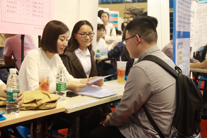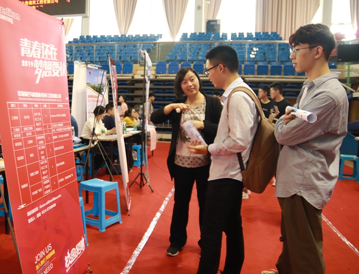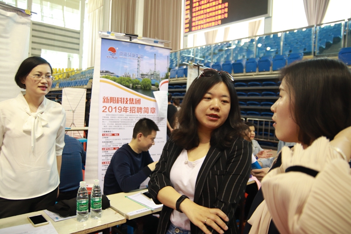 为进一步加强毕业生的就业工作,4月19日下午两点,太阳成集团tyc234cc在校体育馆成功举办2019届毕业生的专场招聘会,岗位需求覆盖了化工及其相关专业的本科生和研究生。公司党委副书记弋鹏老师、毕业班辅导员金芯茹老师到场指导,并与用人单位做深入的交流。