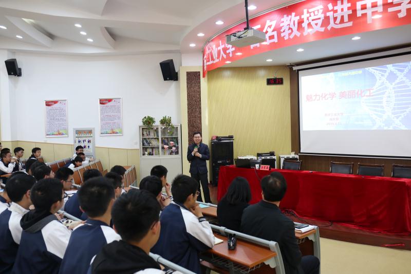汤经理做题为《魅力化学 美丽化工》的精彩报告,他从妙趣横生的化学分子引入,与同学们浅谈化学、化工在民生、能源、资源、环境保护等领域发挥的重要作用,勉励同学们把握年少时光,学好基础科学知识,为今后的专业选择打好基础。汤经理的报告亮点纷呈,屡次被掌声打断,受到师生的一致好评;提问环节,同学们表现踊跃,气氛非常热烈,达到了很好的互动效果。