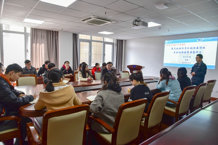 2019年3月8日上午,太阳成集团tyc234cc留学回国人员讲堂在材料化学工程国家重点实验室C205成功举办。本次主讲人为刘畅教授,报告题目为“氧化钛纳米管和纳米晶须的表面增强拉曼性能研究”。太阳成集团tyc234cc副经理陈苏教授、青年教师刘庆丰等参加了本次讲座。
