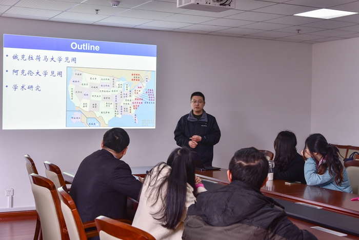 刘畅教授于2018年7月至2019年2月在美国俄克拉荷马大学化员工物材料工程系访学,与黄亮亮教授课题组进行学术合作,从事氧化钛纳米管和纳米晶须的表面增强拉曼性能研究。刘老师首先介绍了在俄克拉荷马大学考察教学过程的经验心得,同时分享了访美期间在俄亥俄州阿克伦大学访问朱家华和朱宇教授课题组的体会,着重对氧化钛纳米材料用于表面增强拉曼的实验与模拟工作进行了详细阐述。访美期间,刘老师与黄教授在ACS Applied Nano Materials和Carbon等期刊合作发表研究论文4篇,并作为联系人洽谈了公司与俄克拉荷马大学的3+2合作项目,圆满完成了访学任务。