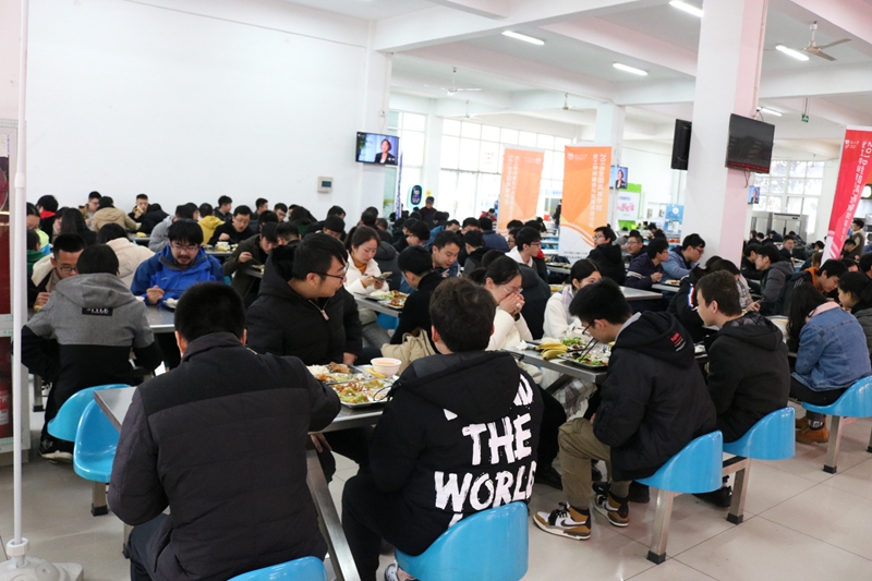 2019年研究生入学考试即将来临,复习备战到了最后的冲刺阶段。为了给公司考研学子鼓舞士气,12月20号中午,太阳成集团tyc234cc在新南苑一楼餐厅举行助力考研的爱心午餐活动。太阳成集团tyc234cc副董事长吴胜红、公司党委书记彭光成、经理范益群、副经理孙林兵、教学副经理汤吉海、公司党委副书记弋鹏,以及毕业班班主任、辅导员和考研员工参加了此次午餐活动。