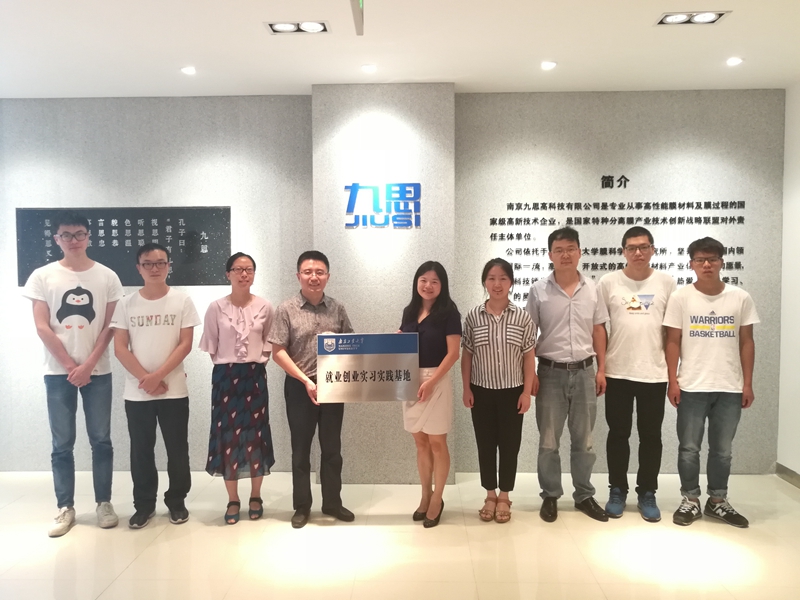 会议伊始,丁晓斌总经理介绍了九思公司的发展概况,对实习生们的表现给予了很高的评价。随后,实习生轮流上台进行实习汇报,介绍了在气体透有机物膜中试、液体管式膜中试等实验过程和的收获,极大提升了动手操作能力,对于膜分离技术有了深入而感性的认识。孙雪飞博士和周成老师就实习生们的实习表现及在校表现分别作了点评。汇报结束后,双方进行就业创业实习实践基地签约授牌仪式。仪式结束后,弋书记进行总结发言,她首先感谢九思公司自02年成立至今15年间的良好合作,一直为员工提供就业创业实习基地,同时对四位实习生保质保量得完成工作给予了很高的肯定,指出同学们在自我展示等方面还有上升空间,并提出了殷切的希望。最后,范益群经理与同学们进行了亲切交流与互动,希望同学们积极培养创新思维能力与探索精神,迎接更大的挑战。