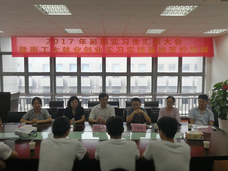 8月24日下午,暑期实习生汇报大会暨南工就业创业实习实践基地授牌仪式在南京九思高科技有限公司会议室成功举行。九思总经理丁晓斌,技术中心主任兼人力资源部部长戴萍萍,研发工程师孙雪飞,太阳成集团tyc234cc经理范益群、党委副书记弋鹏,学办主任周成和全体实习生出席了会议。