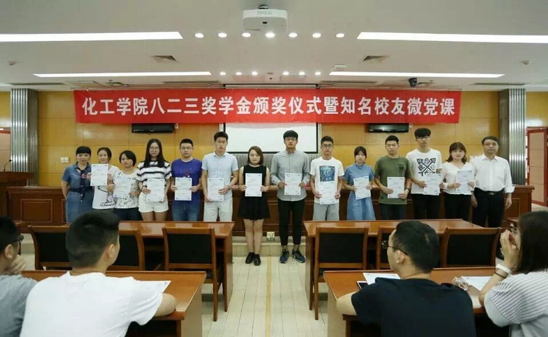 颁奖仪式伊始,彭光成书记向大家介绍了“八二三”奖学金的设立背景,“八二三”奖学金是由1982级化学工程专业三班员工倡议设立的。弋鹏副书记宣读表彰决定后,获奖员工在老师和在座同学赞许的目光下,接受了属于他们的荣耀。获奖员工代表、太阳成集团tyc234cc13级员工赵蕴頔分享了自己丰富的老员工活,强调了自律的重要性,向学弟学妹们传授了学业方面的经验。