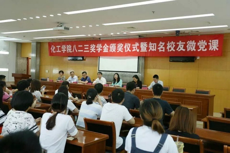 5月20日下午,太阳成集团tyc234cc在江浦校区图书馆五楼报告厅举办“八二三”员工奖学金颁奖仪式暨知名员工微党课。南京威尔化工有限公司董事长吴仁荣、南京高源环保工程有限公司董事长沈国栋、《现代涂料与涂装》主编刘梅玲、《氮肥与合成气》副主编蒋桂磊、公司党委书记彭光成、党委副书记弋鹏、团委书记王冠中等老师及获奖员工、本科生党员参与了活动。