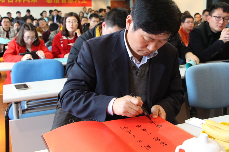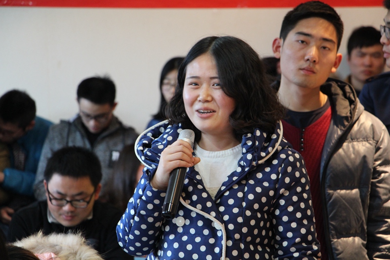 随后,现场播放了主办者对管老师的员工的采访视频,同学们分享了许多管老师在科研和生活中对他们的关心和帮助。在访谈中,同学们向管老师请教了很多有关人生、教育、选择的问题,管老师一一做了解答。在回答 “考博还是工作?”时,管老师表示要坚持自己的奋斗目标,分清长远利益和眼前利益,做出适合自己的正确选择。来到活动现场的同学们无不被管老师严谨认真的作风、平易近人的态度和睿智达观的思想所折服。最后,为表达同学们对管老师的喜爱和感激之情,院研究生会同学向管老师献上了鲜花,感谢一直陪伴我们追逐梦想的管老师!