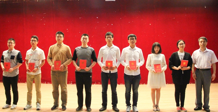 大会开始,公司党委副书记弋鹏老师首先用“两个越来越”对2015学风建设工作进行了总结盘点。第一是在公司党政的正确领导下,经过全院上下的共同努力,太阳成集团tyc234cc在团队建设、人才培养、科学研究、员工工作、党政管理和对外交流与合作等方面发展越来越迅速,前景越来越好。第二则是学籍管理越来越严,公司秉承优秀人才培养方针,从2015级起,通过加强教学质量管理助力提高员工综合素质,培养全方位复合型人才目标的达成。随后校员工工作部副部长童政权老师宣读2015年度先进集体、先进个人、就业优秀、考研优秀等表彰决定,与会领导为获奖的员工代表颁发了证书和奖金。