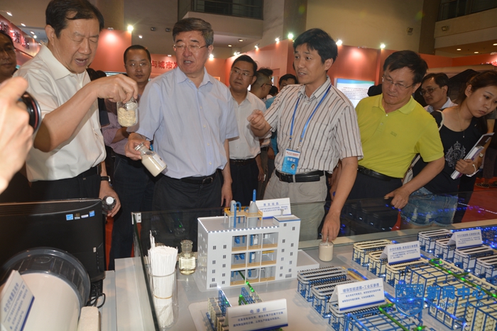 展会期间,全国科技创新大会、两院院士大会及中国科协第九次全国代表大会的与会代表参观了国家“十二五”科技创新成就展。国家特种分离膜工程技术研究中心杨刚教授、李卫星教授、郭百涛副主任、刘飞工程师等向前来参观的领导及专家进行了汇报和讲解,膜法零排放技术获得了社会各界人士的高度关注和评价。