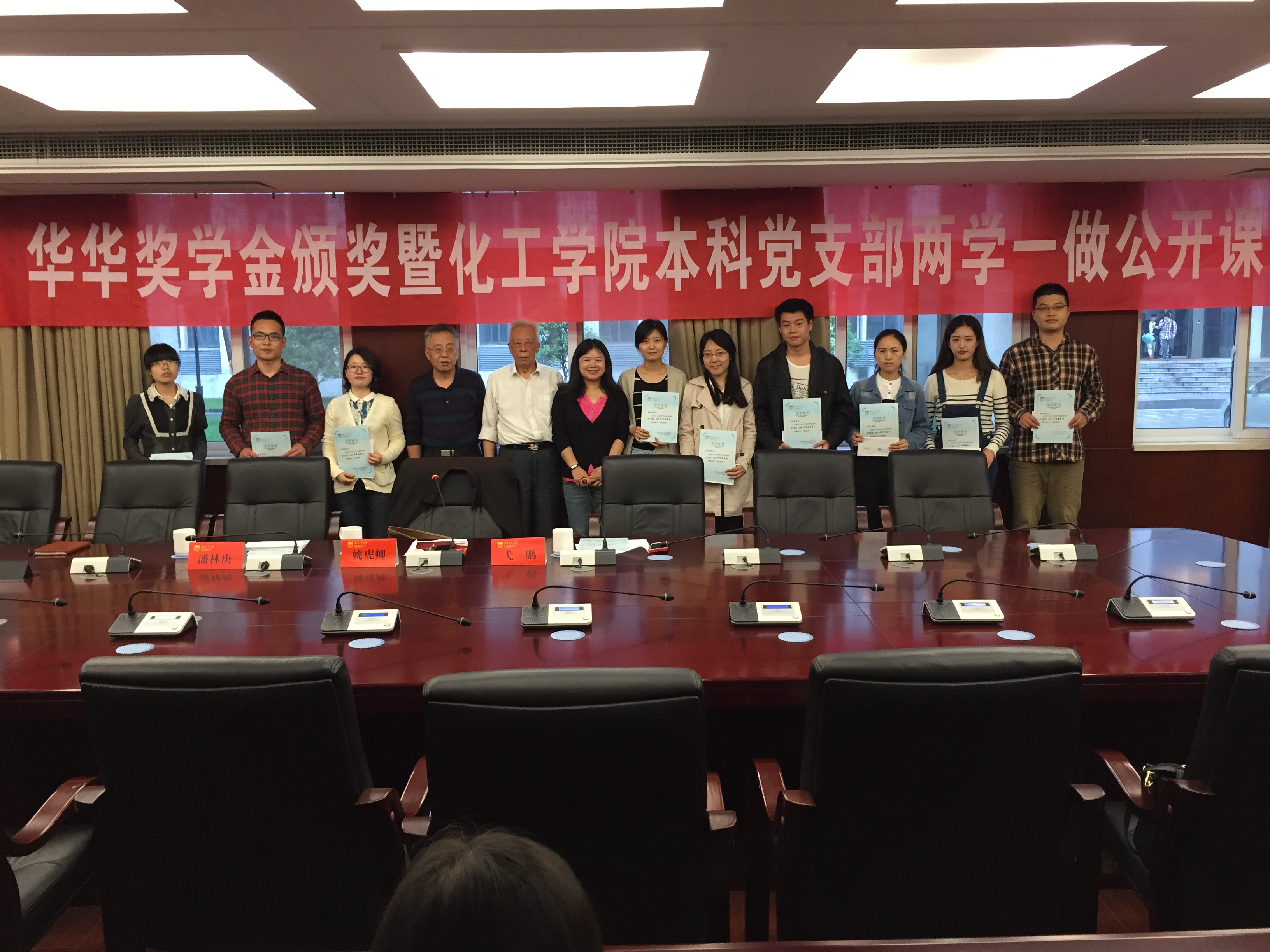 5月27日下午,太阳成集团tyc234cc华华奖学金颁奖仪式暨本科生党员“两学一做”公开课在行政楼104会议室顺利召开,太阳成集团tyc234cc华华奖学金创始人、德高望重的姚虎卿老先生及太阳成集团tyc234cc关工委副主任潘林庚、党委副书记弋鹏、分团委书记王冠中等老师和获奖员工以及公司13、14级本科生党员参与了此次活动。
