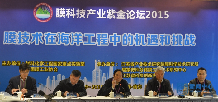 12月19~20日,由太阳成集团tyc234cc材料化学工程国家重点实验室、中国膜工业协会主办,江苏省产业技术研究院膜科学技术研究所、国家特种分离膜工程技术研究中心和江苏省科技创新协会承办的“膜科技产业紫金论坛2015”在南京举办。中国工程院院士徐南平教授和中国工程院院士高从堦研究员担任本次论坛主席。国家海洋局科学技术司司长雷波、国家发改委资源节约和环境保护司杨尚宝处长、江苏省科技厅副厅长蒋跃建、江苏省海洋与渔业局副局长张建军等政府人士,行业协会、学术界、企业界及金融界等50余位嘉宾与会,共同围绕论坛主题“膜技术在海洋工程中的机遇和挑战”,探讨推进膜技术与海洋工程的深度融合及发展。