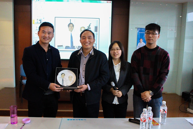 接下来,现场播放了一段金老师课题组同学和老师对金老师的评价。员工们纷纷称赞金老师和蔼可亲、学术严谨、富有责任心。金老师表示,作为一名导师,应当努力与员工沟通,不仅要在学术上启发员工,鼓励他们积极参与学术交流活动,增长见识,更要在生活上关心员工,让他们能以一个良好的状态进行科学研究。
