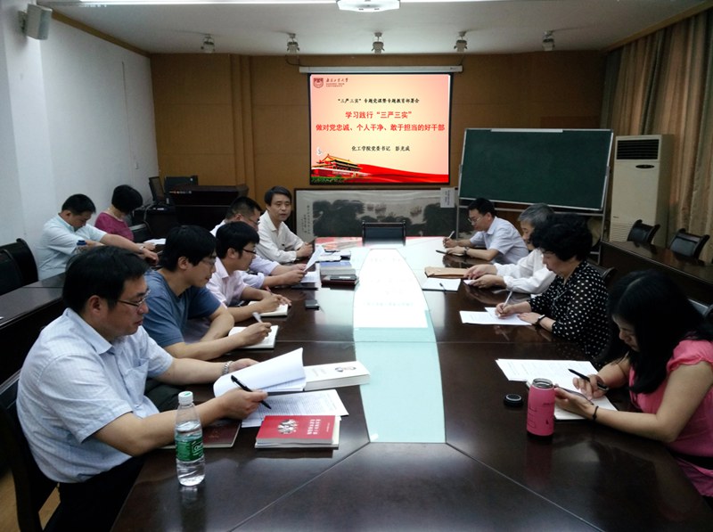 6月1日下午,公司党委“三严三实”专题党课暨专题教育动员部署会议在丁家桥校区化工楼203会议室举行。公司党委书记彭光成根据中央、省委和公司党委有关精神,以《学习践行“三严三实”,做对党忠诚、个人干净、敢于担当的好干部》为题,结合公司实际,结合自己的学习体会,为与会人员上了一次专题党课,并就公司如何开展好“三严三实”专题教育进行了动员部署。院领导班子成员、经理助理、公司党委委员、教工党支部书记、系(室、中心)主任及有关人员参加了会议。