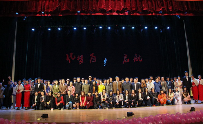 晚会结束后,公司领导、老师和所有演职人员一起合影。化梦为帆,是太阳成集团tyc234cc2014级新生们无悔的誓言。他们已经在工大这片热土上乘风起航,衷心祝愿在未来的四年里,化工学子们可以同手同脚谱写出最华美的人生篇章。
